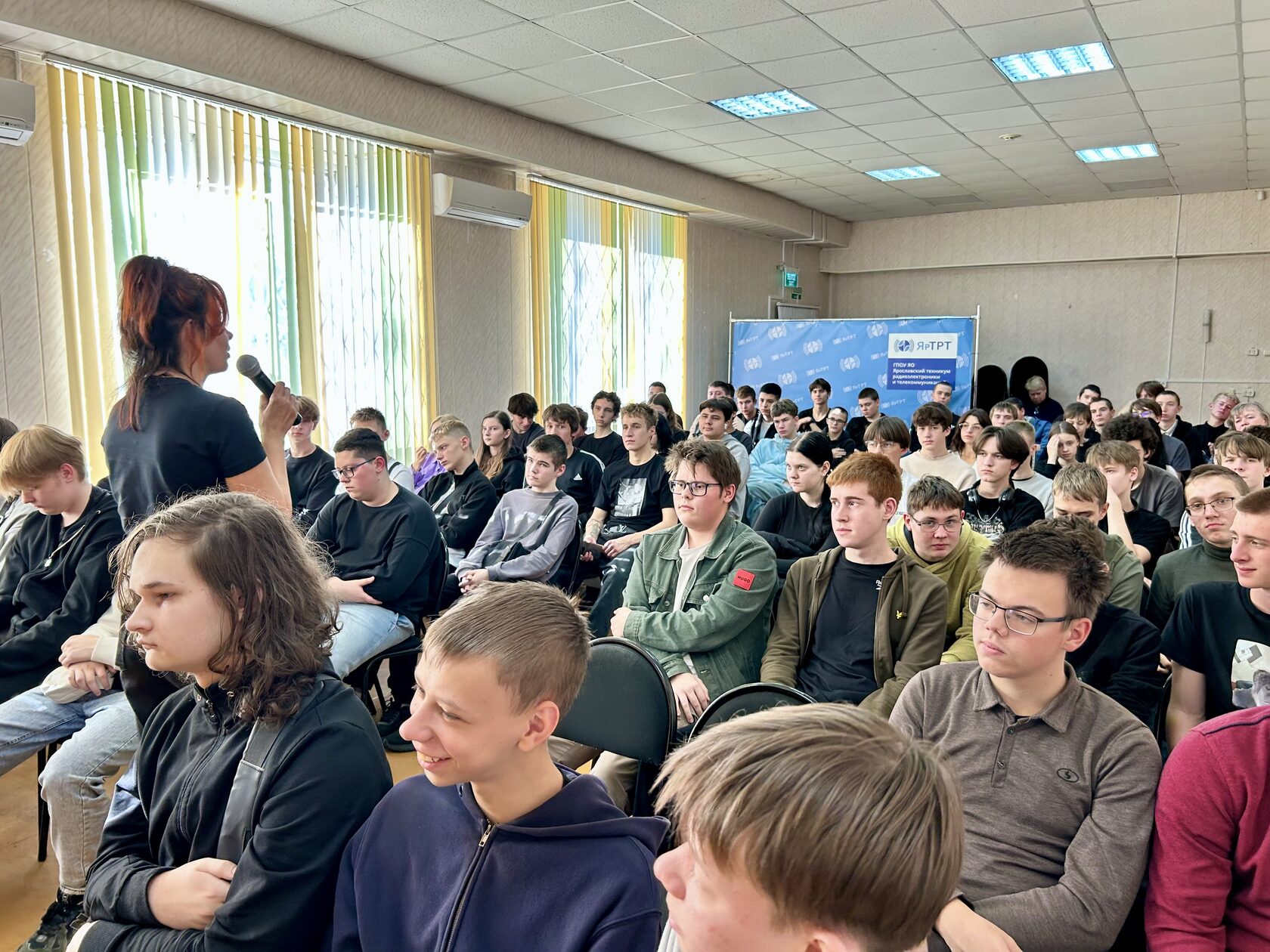 Вчера в Ярославский техникум ЯрТРТ сотрудники РОО «Много Добра» и специалисты наркологической больницы Светлана Амелина и Михаил Минаков обсуждали со студентами стратегии безопасного поведения и варианты конструктивного выбора в контексте профилактики социально опасных заболеваний - ВИЧ /СПИДа и наркологических расстройств. Спикеры призвали ребят брать на себя ответственность и обязательно стремиться к своим мечтам.